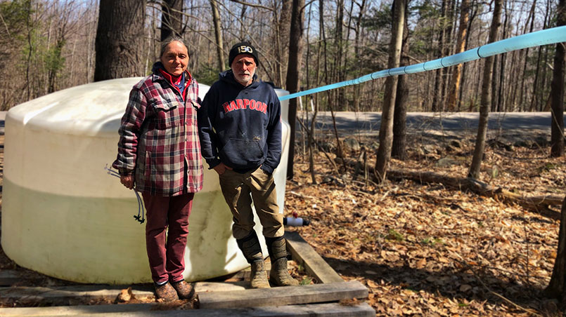 Our Steele Hill Resort property is set amongst 500 acres of forested land, including a wide-ranging maple orchard located right onsite. The orchard is situated behind the farm sitting atop Steele Hill Road, just before reaching the resort campus and each year during the early spring period, the maple trees are tapped using an extensive large piping network. We work closely with Tim and Heidi of HT Farm located in Belmont, New Hampshire who are able to set up thousands of taps within the acres of the maple orchards each year. Once harvested, they transport the sap back to the Belmont farm to begin the boiling and filtering process. At the end of each maple season, they are able to produce upwards to 1,000 gallons of organic and pure maple syrup!